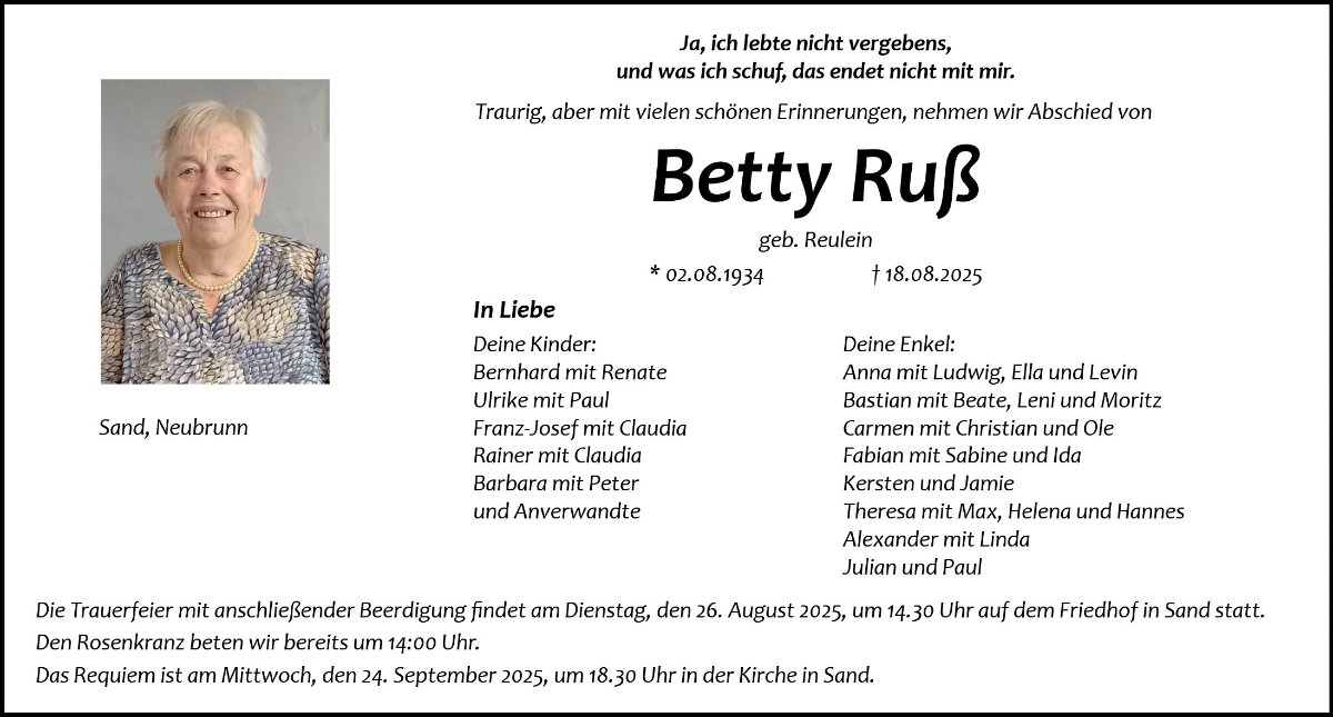 Betty Russgestorben am 18. August 2025