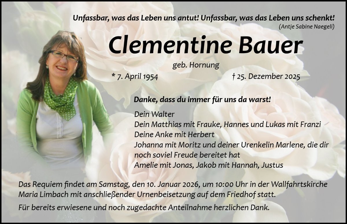 Clementine Bauergestorben am 25. Dezember 2025