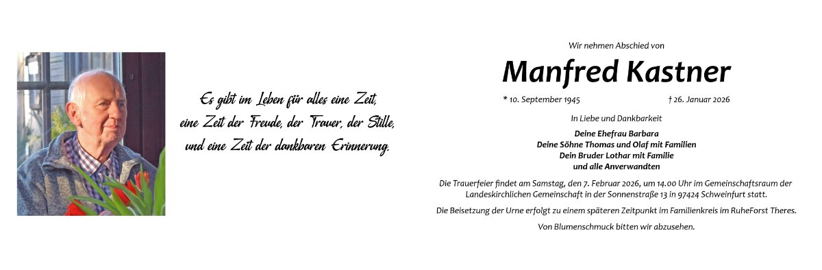 in dieser Zeit des Schmerzes wünschen wir Ihnen Kraft, den Verlust im Kreise Ihrer Liebsten zu verarbeiten. Als Zeichen unserer Anteilnahme und des Gedenkens entzünden wir dieses erste Licht. Möge diese Gedenkseite Ihnen helfen, Erinnerungen zu teilen und so das Andenken gemeinsam wachzuhalten.