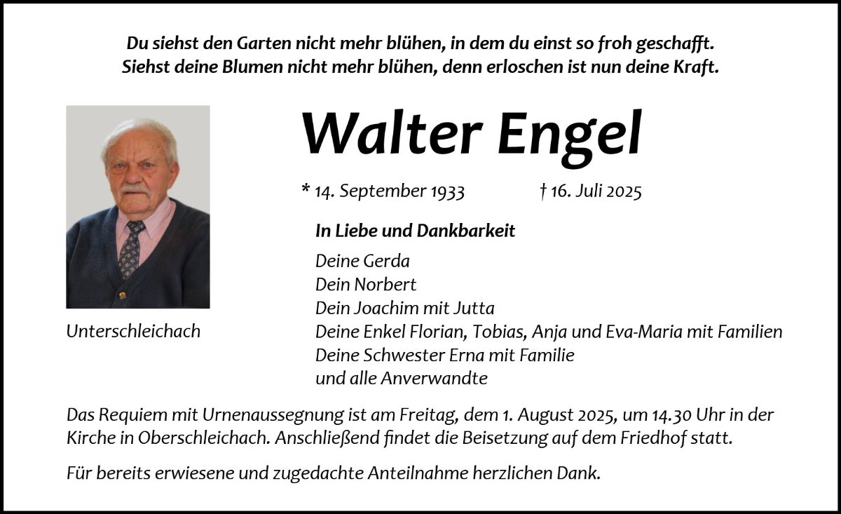 gestorben am 16. Juli 2025 in Oberaurach OT Unterschleichach